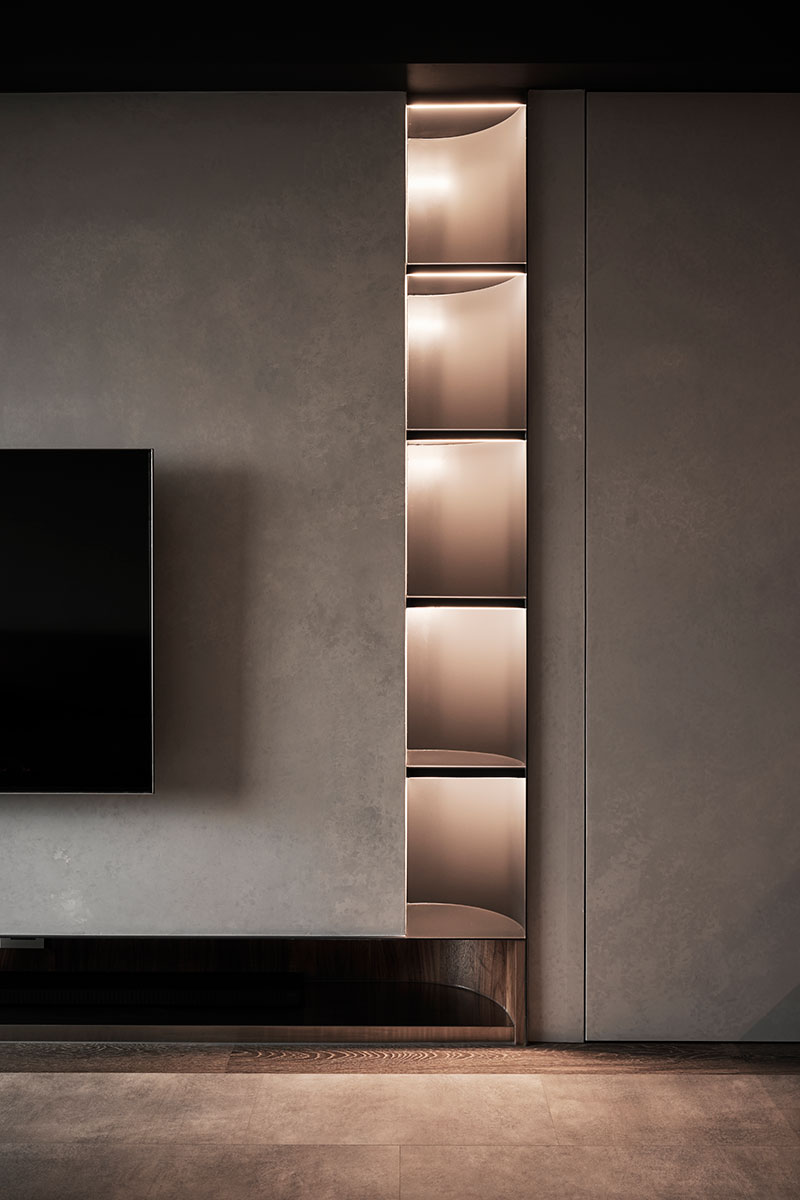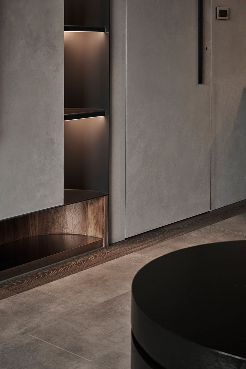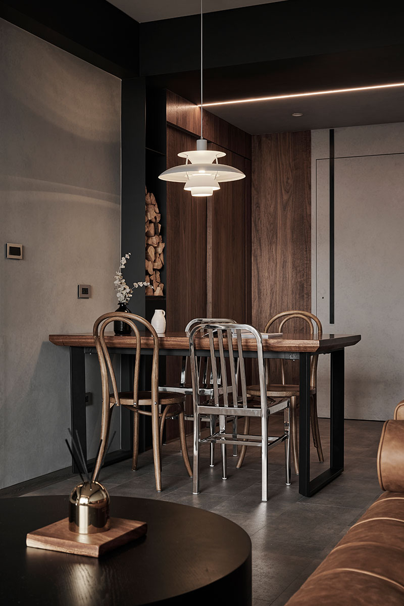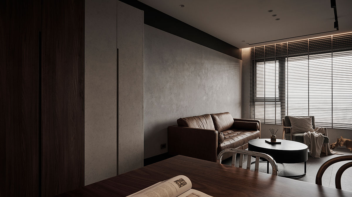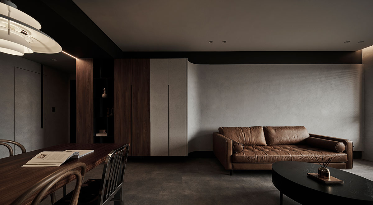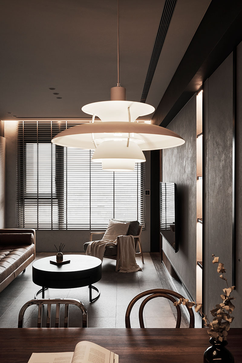 中和復古幽思與現代簡約情懷,黑灰色調渲染全室,穩重大氣,乘載一家三口的歡聲笑語;屋主們的憧憬雖有所差異,但透過融合的設計,消融每個變化產生之處,使「不同」顯得趣味而和諧,相依相存,成就迷人共生的家之風景。