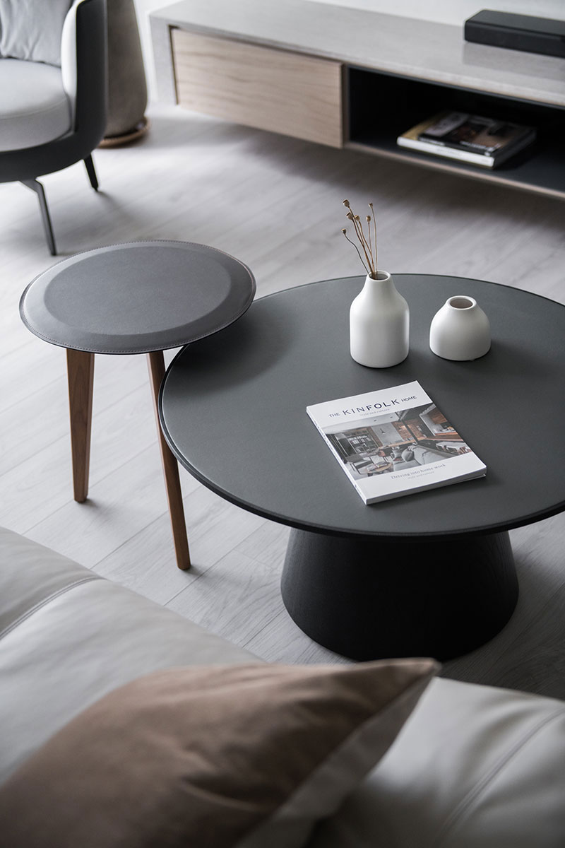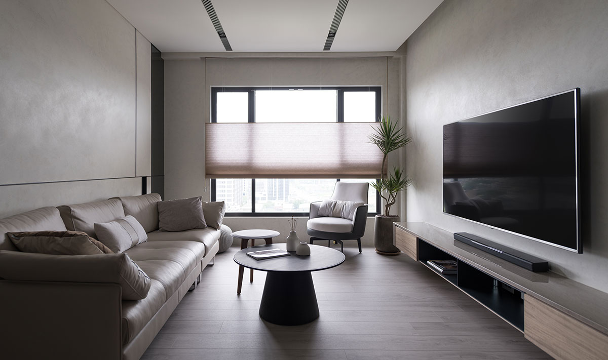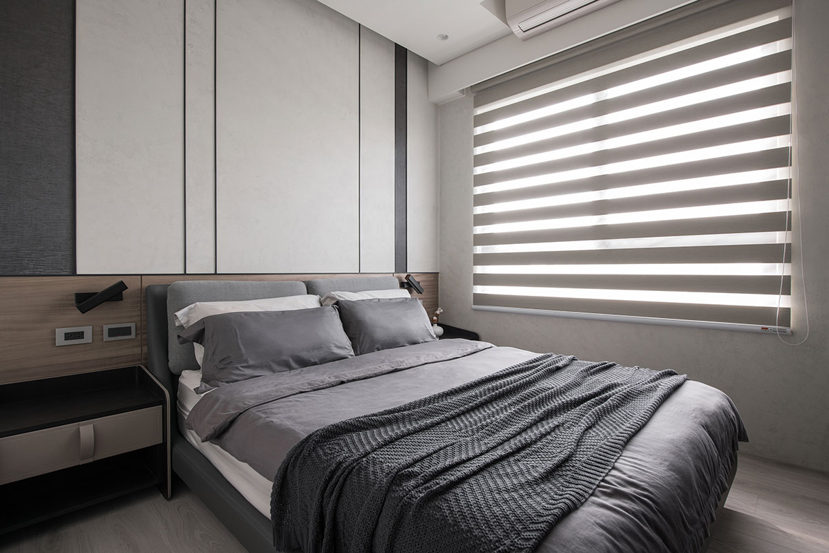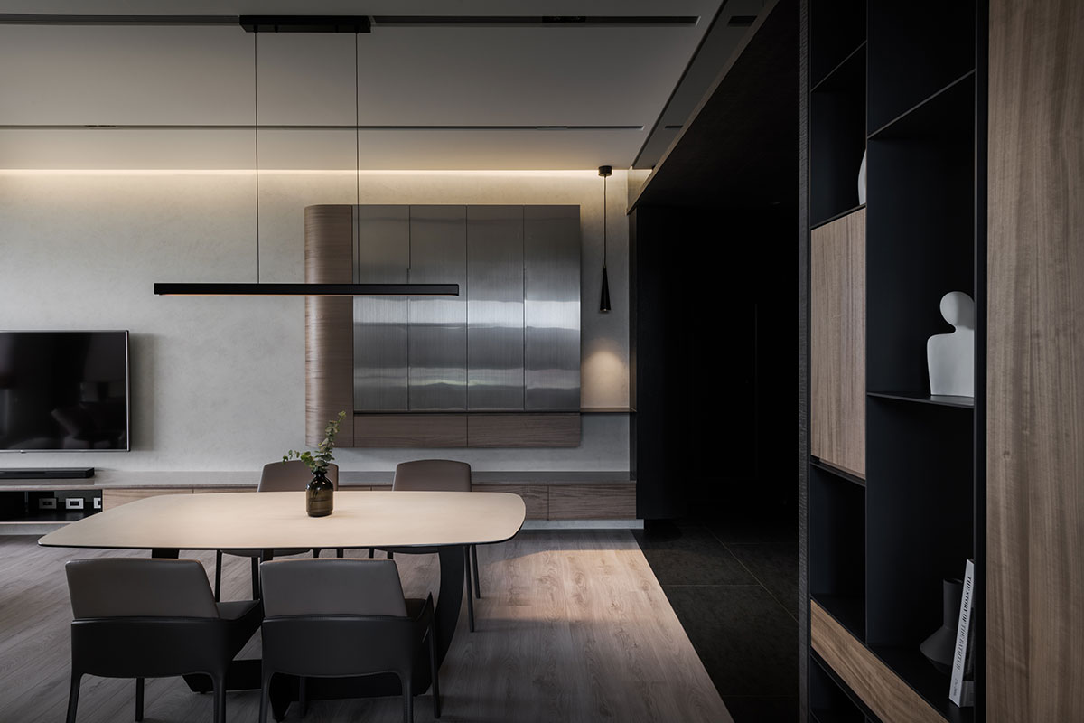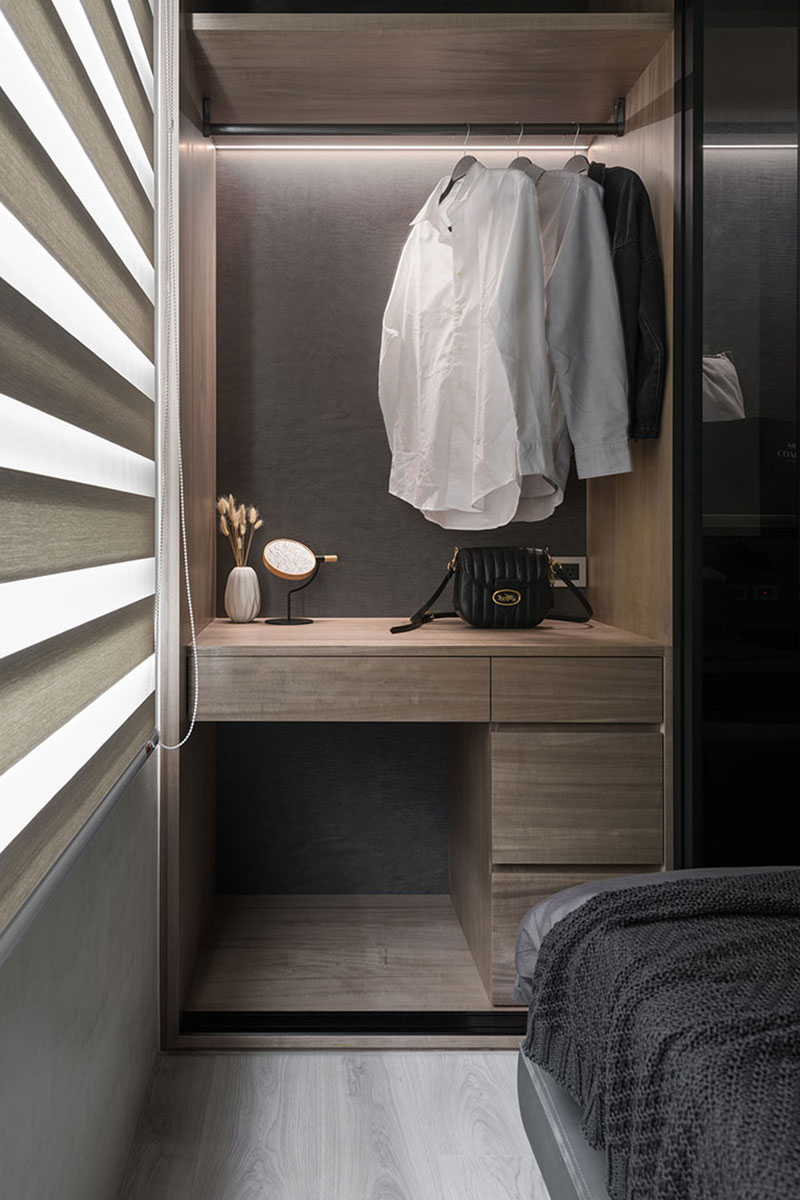 The property owner works in the design field and most often deals with the high color saturation schemes; however, we adopt the low Chroma theme to inspire the proprietor's imagination of colors. To coincide the demands, demolished the original partition wall of the second bedroom, and transformed into a semi-open working area, hence, brings about the complex pattern of studio and dwelling. Moreover, make use of hidden doors to conceal the private areas and the bathroom. Ingeniously, take the advantages of the construction materials to extend the spatial layout, so that creates an up-to-date humanistic domain of captivating features.